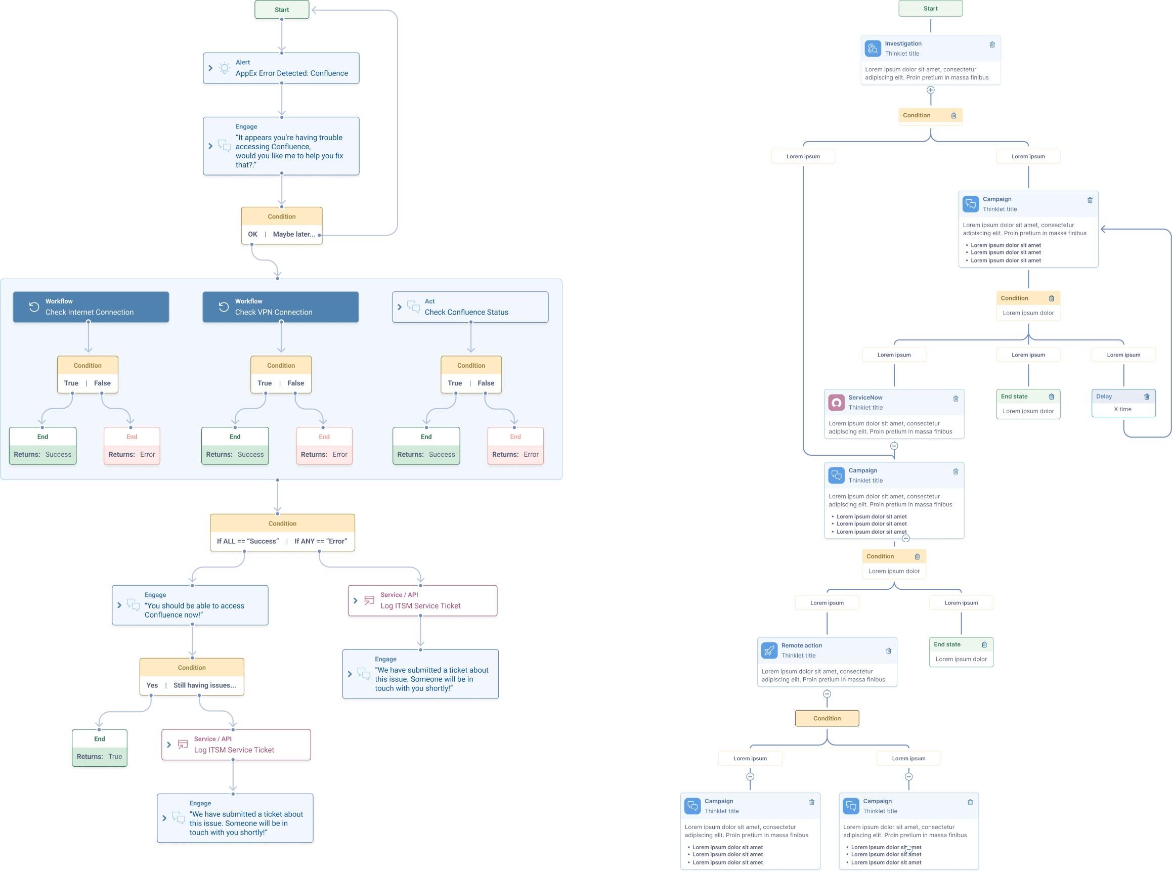 Why: As workflows grew complex (e.g., “If X, wait 10 mins, then do Y”), users lost their place. It failed to match the user’s mental model of a troubleshooting tree.